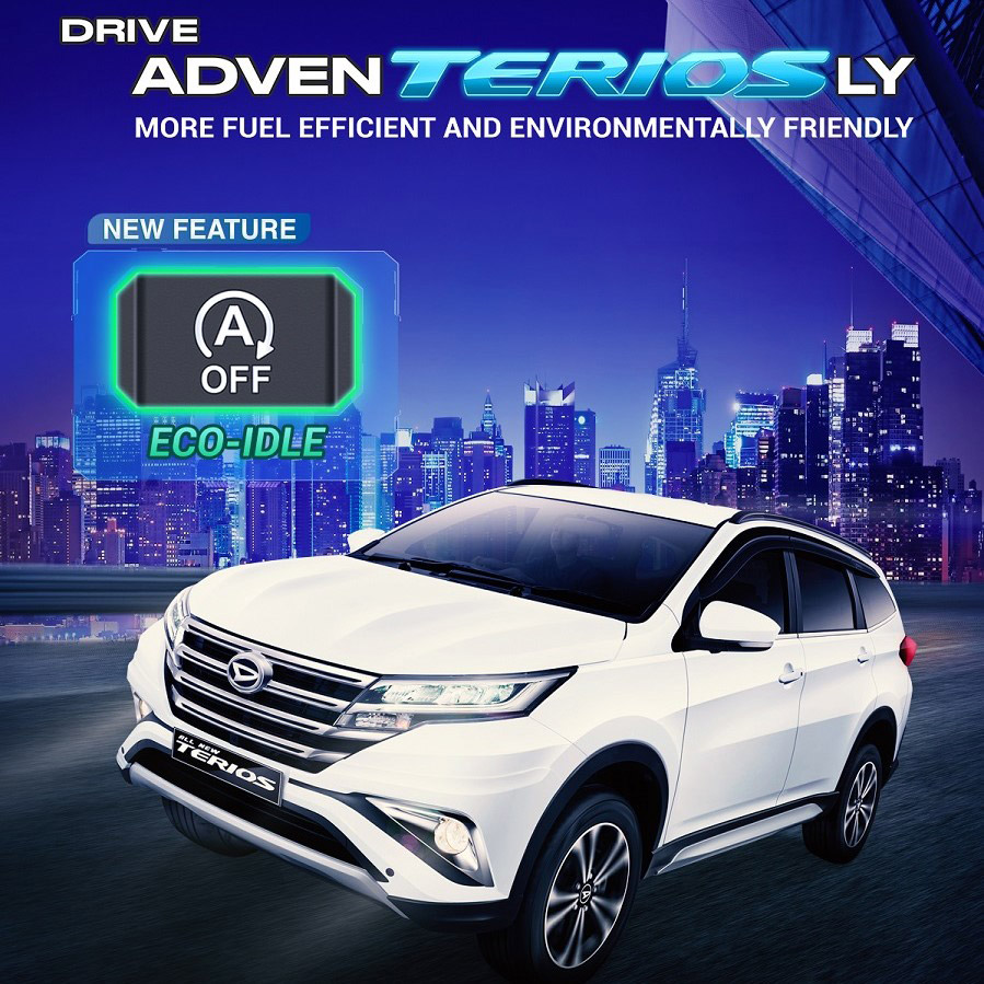 Demi memenuhi kebutuhan dan permintaan masyarakat yang semakin beragam, Daihatsu hadirkan fitur kekinian pada seluruh varian Terios, yakni Eco Idle. Fitur ini berfungsi untuk mematikan mesin secara otomatis ketika kendaraan dalam kondisi berhenti dengan tujuan menghemat konsumsi bahan bakar, mengurangi tingkat emisi gas buang, sehingga membuat kendaraan semakin ramah lingkungan.
